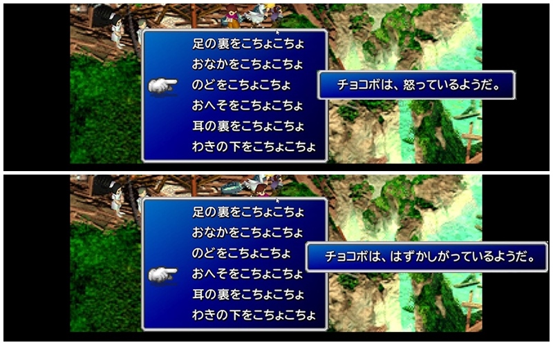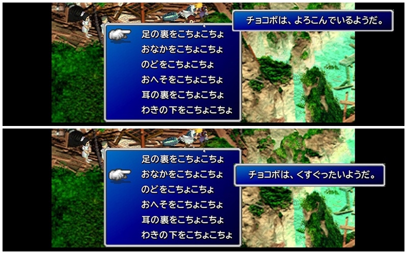 そのこちょこちょする場所によってチョコボの反応が違ってて…