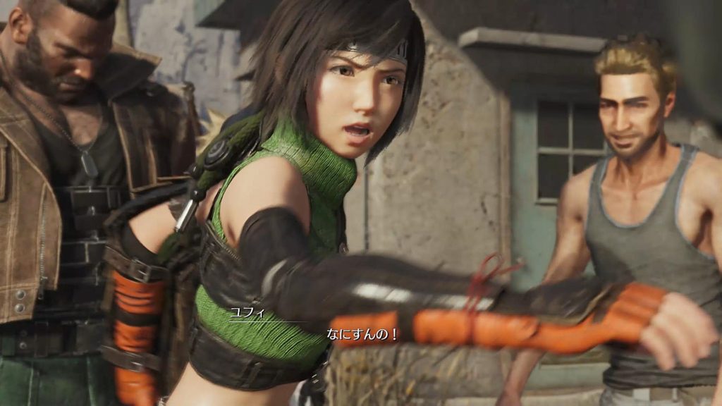 バレットが侮辱されてるのを見て、ユフィがすぐに止めに入る。
