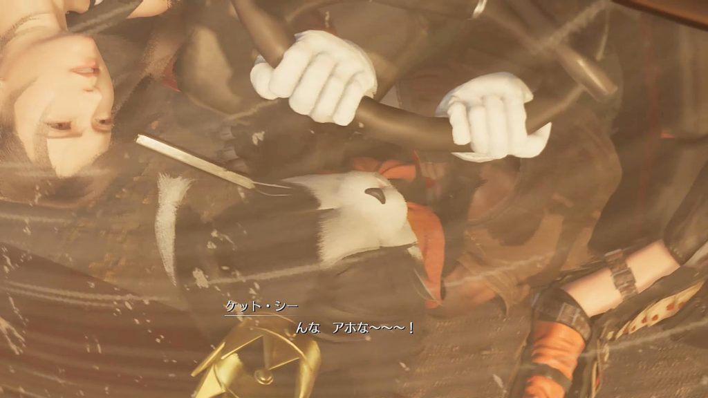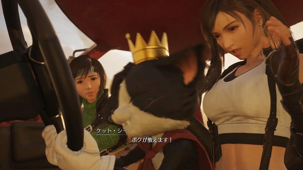 普通の車の運転はできるけど、こんなに大きな車は操作したことがないティファの補助を名乗り出るケット・シー。
