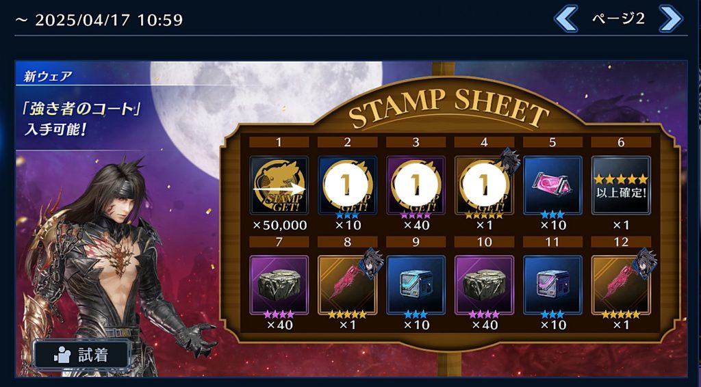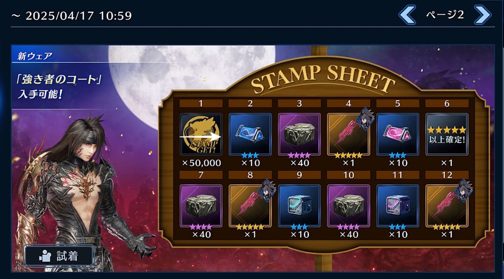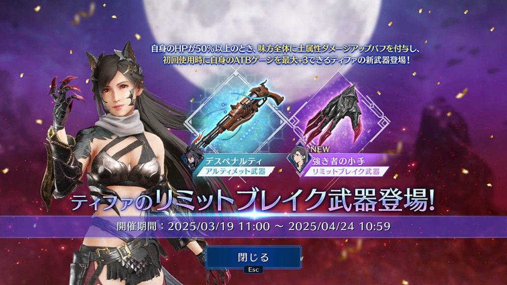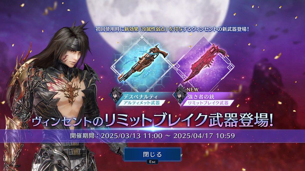 新武器は自引きで2本出たけど、今月のヴィンセントアルティメット武器はなし。
