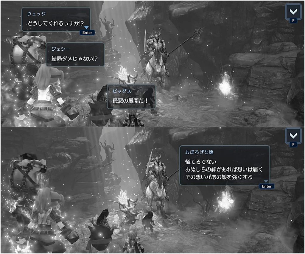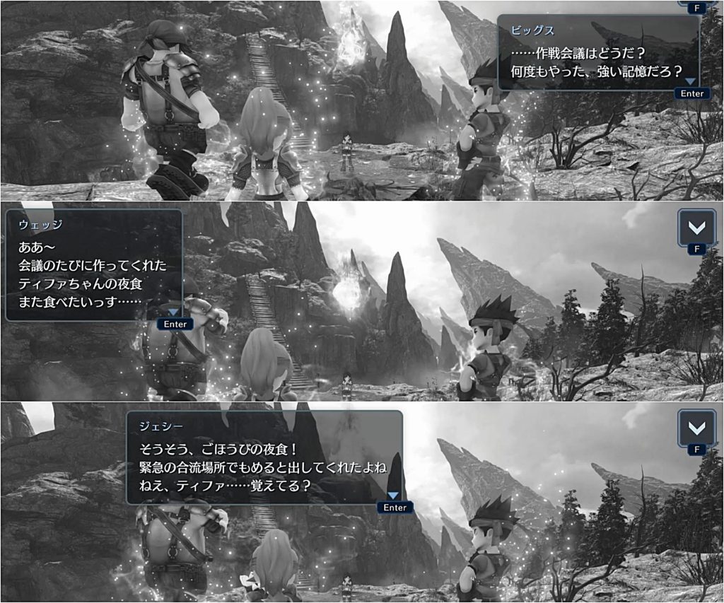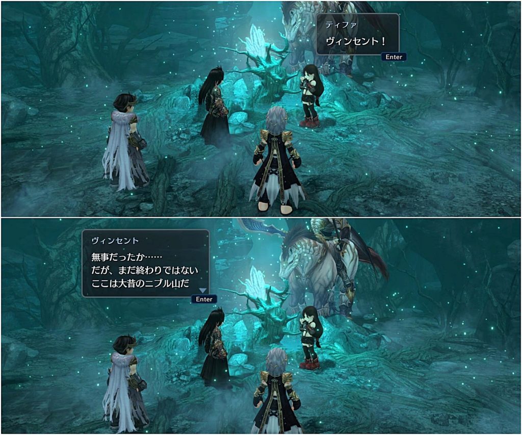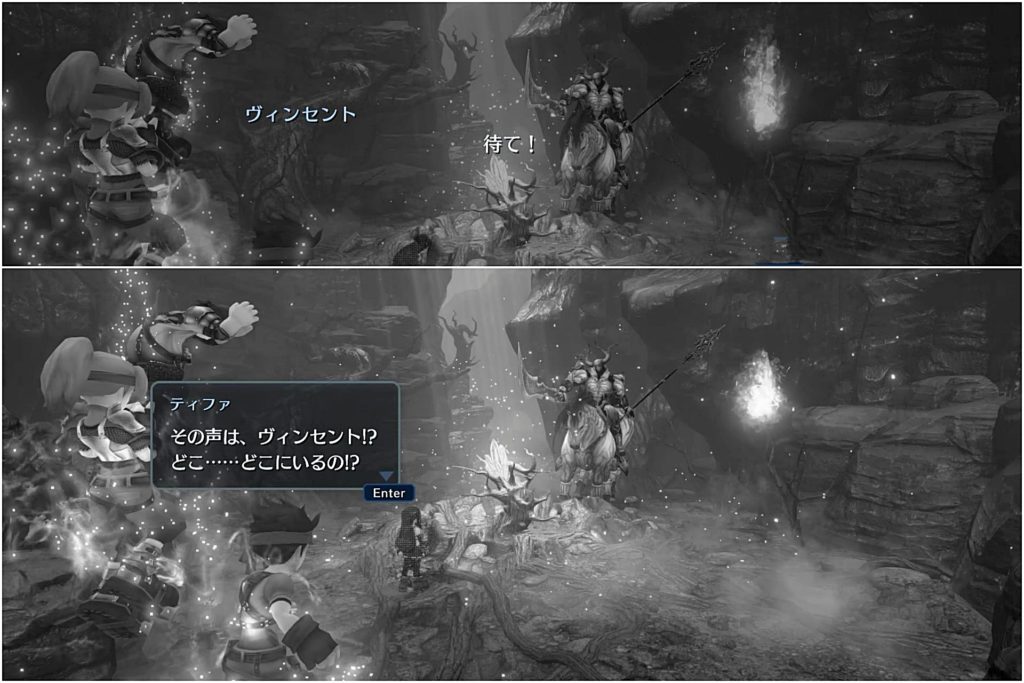 同じ場所でもティファがいるところは「生と死の狭間」で、ヴィンセントたちがいるところは生きる者の世界。時間軸は現在ではなく昔のニブルヘイム。