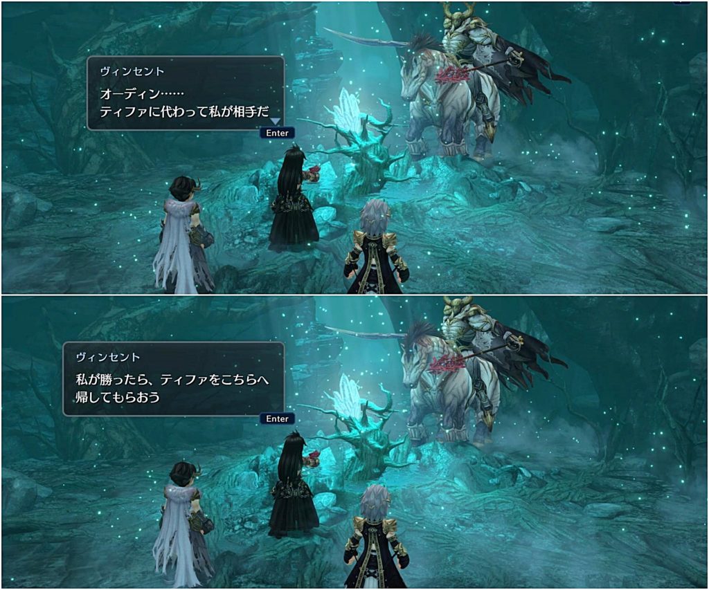 前回、ティファを返してほしければ我と戦えとオーディンに挑まれたところで終了。