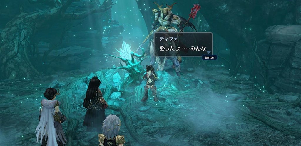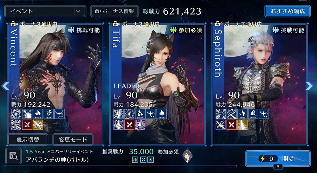ここはティファひとりで戦ったほうがストーリー的にはよかったかもしれないけど、せっかく衣装まで取った3人を並べたかったので。