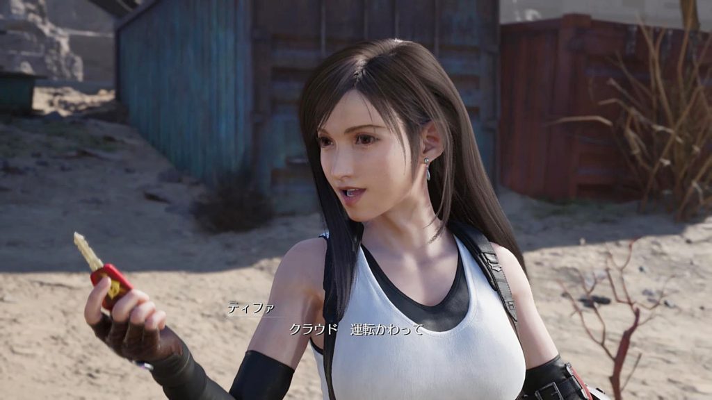 ティファが車のキーを放り投げてクラウドがキャッチする。