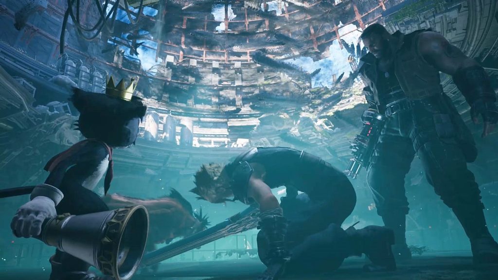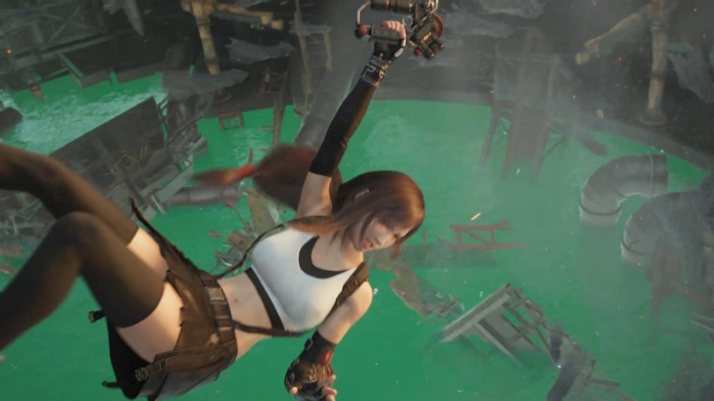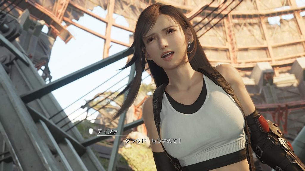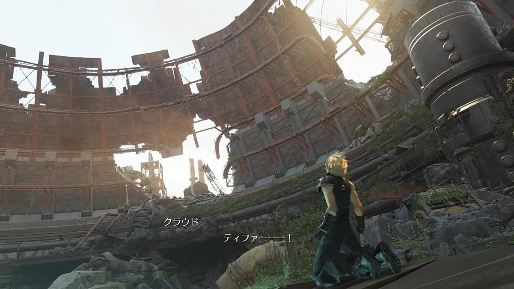 ここは空仰いで叫ぶじゃなくて落ちた魔晄炉に向かって「ティファーーー!」ってするほうがよりリアルで自然だったかな。