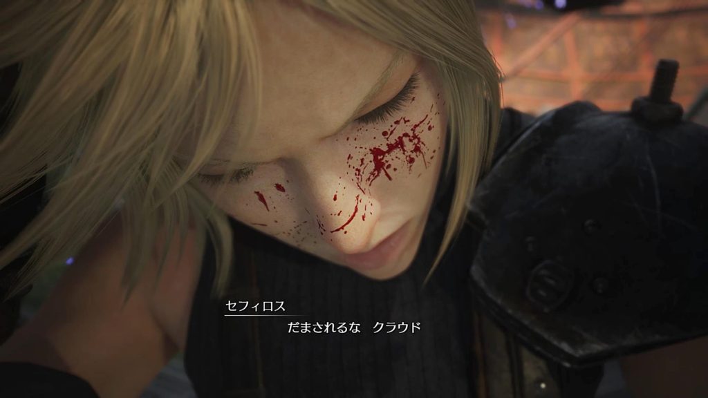 洗脳されてセフィロスの構えをするこのクラウドがめっちゃ怖かった。