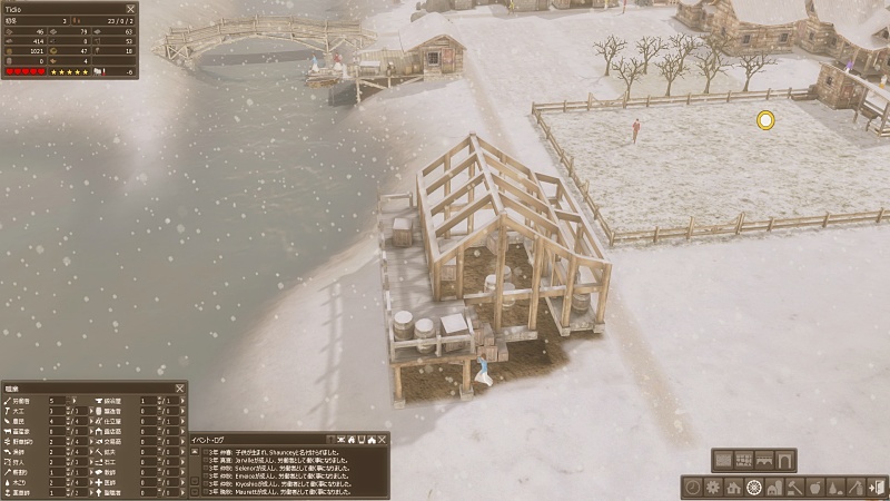 最初のプレイ時、何の準備もなく厳しい冬を迎えた後の春に住人2名ほど餓死させてしまいました(T_T)