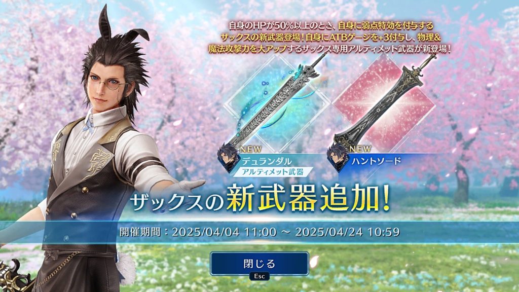 ザックスがひさしぶりにガチャで登場。