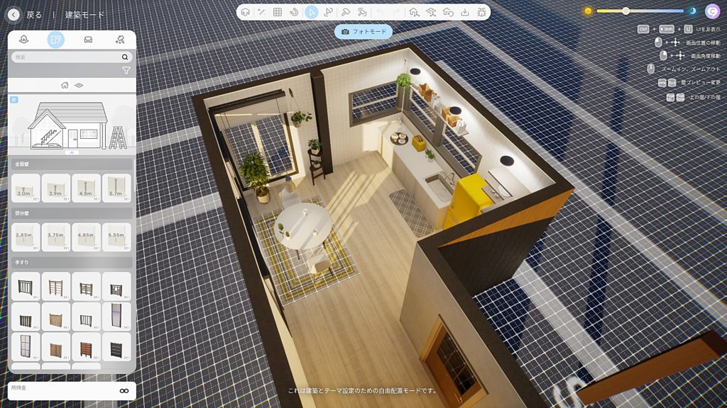 で、私はキャラメイクよりも建築のほうが好きなので、フリーの建築モードを早速プレイ。