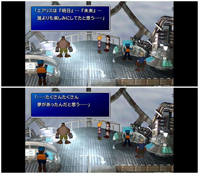 直接的なエアリスの死の場面よりも、こうしたテキストで涙が出る。