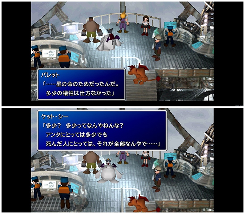 またバレットとしては、この件で被害者に責められるならまだしも神羅の人間であるケット・シーには言われたくなかったと思う。