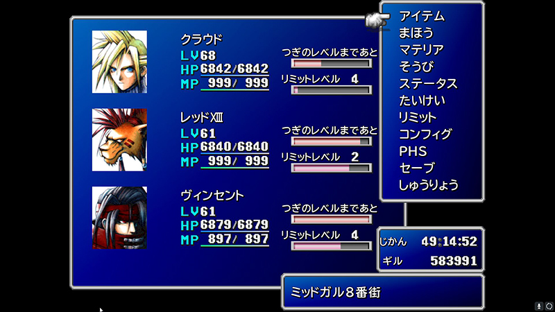 上記のタークス戦もそうだけど、ボス戦はその相手と因縁のあるメンバーを入れるという自分なりのこだわりがあります。
