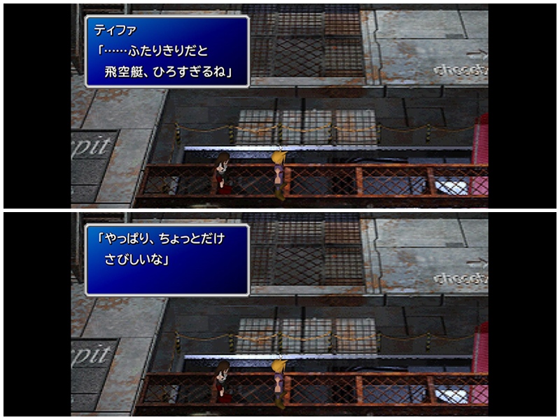 今までたくさんの人がいた分、余計に静かに感じられたであろう飛空艇内でティファがこう言う。