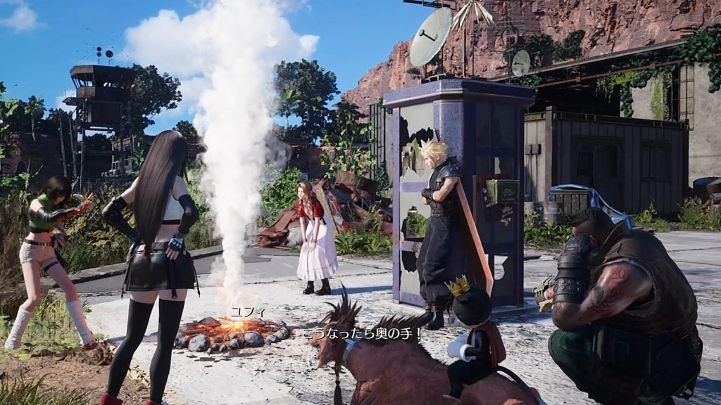 まあでも仲間になって間もないユフィやケット・シーがこうしてからかうぐらいに、クラウドとティファは幼なじみなだけでなくお互いなんとなく意識しあってる関係に見えるということなんだろうね。