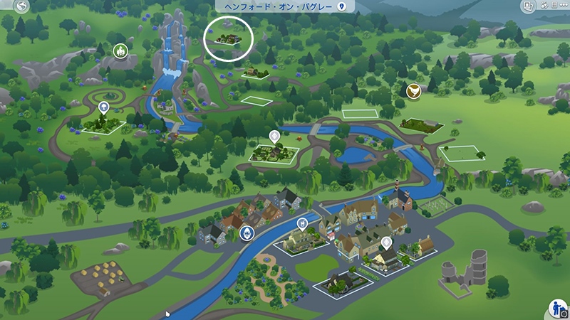 まずは家を建てる場所に迷って、ひとまずは白丸で囲ってる場所に建築。