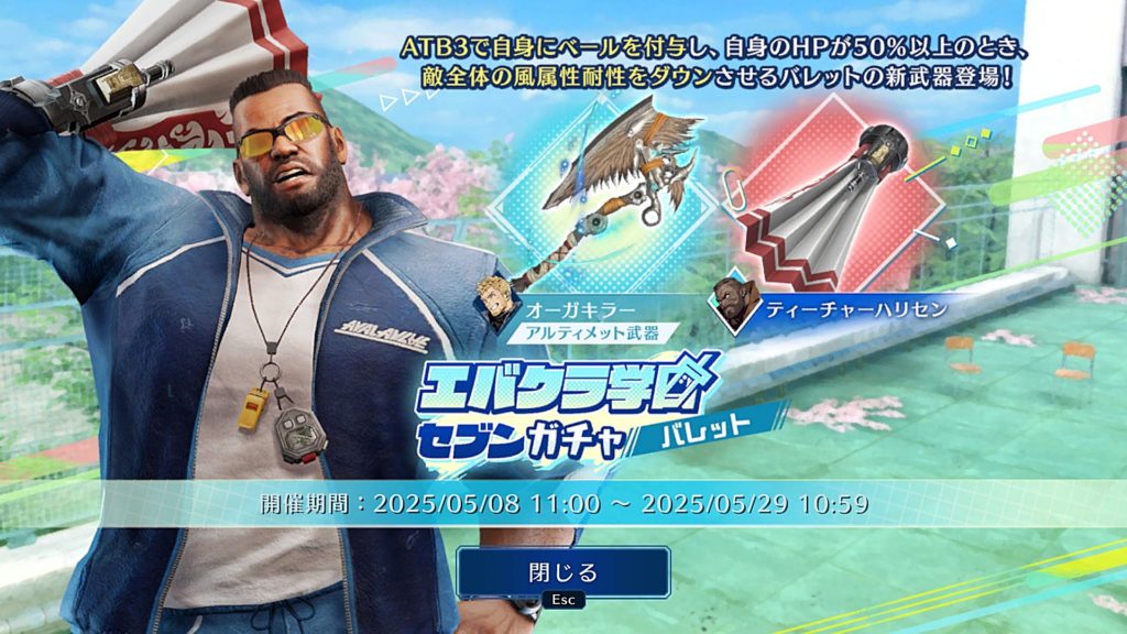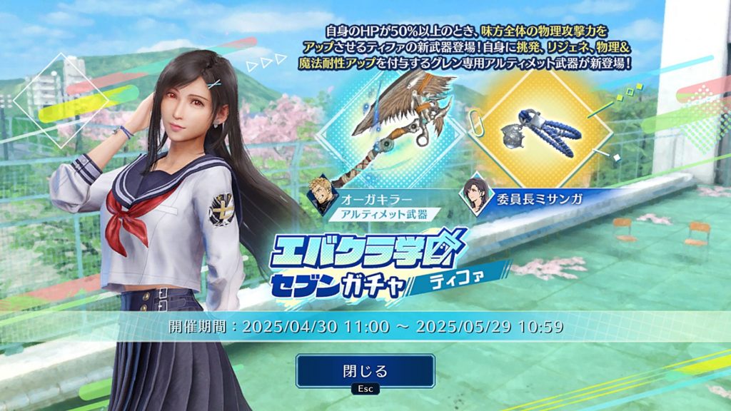 しかし、エアリスが本命なのでそれを引いてから残りのブルクリと相談してガチャ引くか決めるのでひとまず保留。