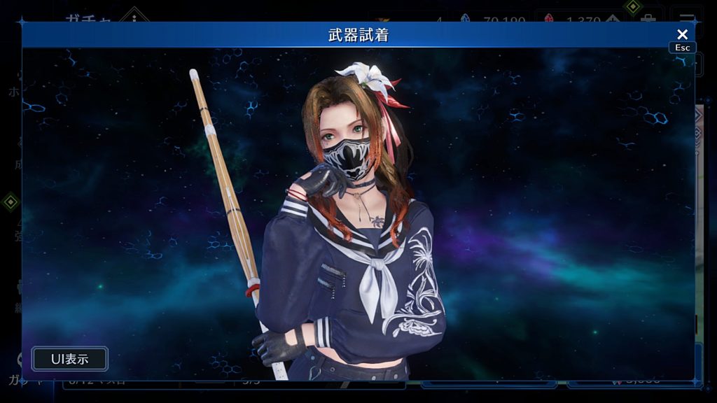 髪型もかわいいし、マスクのおかげでコスプレ感ないし、実際にゲーム画面で見てもよかったのでガチャまわします。