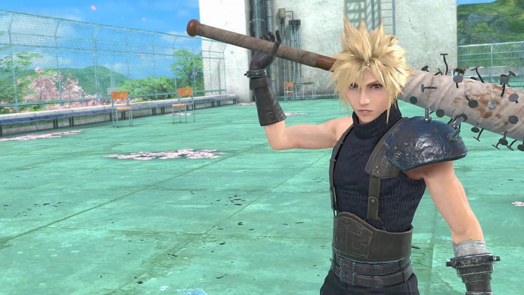 授業に出ないで屋上でバットの素振りをしているクラウド。