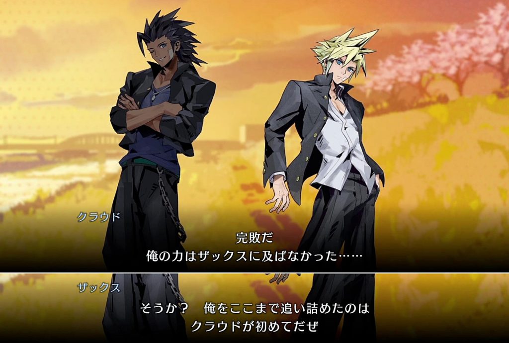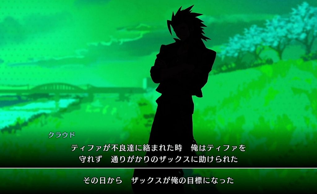 やっぱりザックスには勝てなかったけど、なかなかいい勝負だったらしくクラウドもちゃんと強かったという描写。