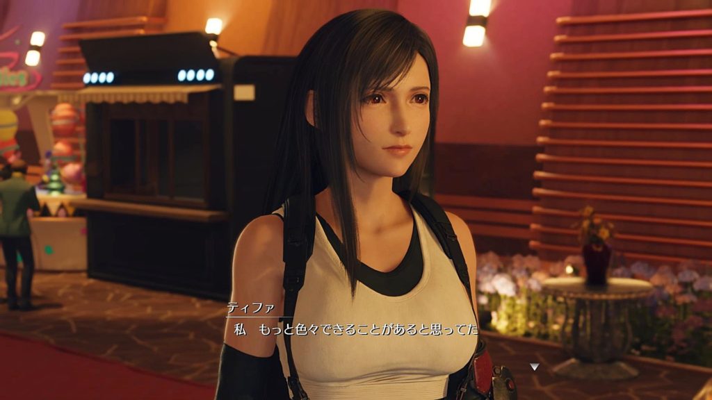 ティファの「私また流されてる?」と言ったその心理は先にも述べたけど、クラウドとこうしてデートしてるのうれしいけど、それは私だけ?私また勘違いして舞い上がってる?が台詞の中に隠された気持ち。