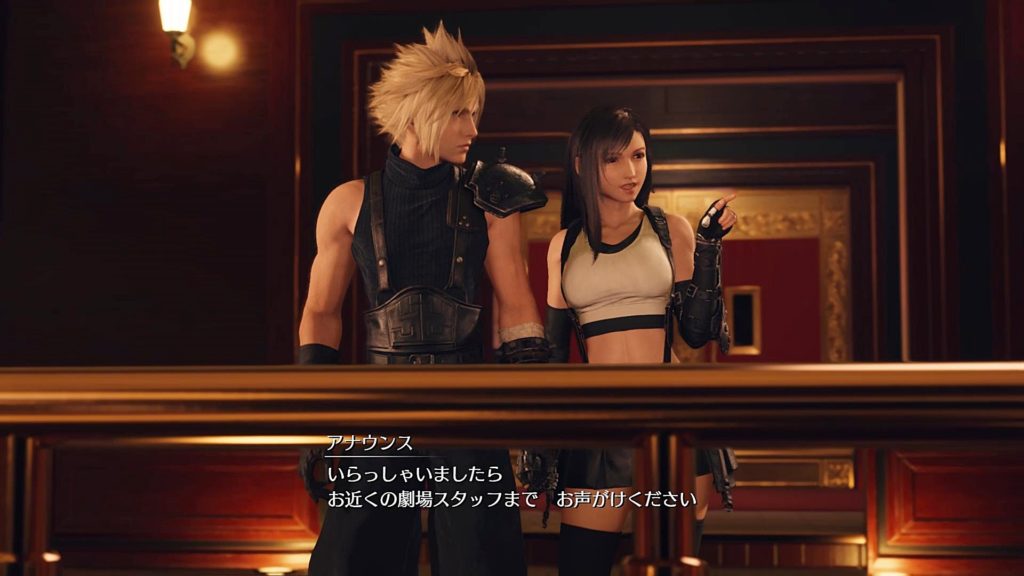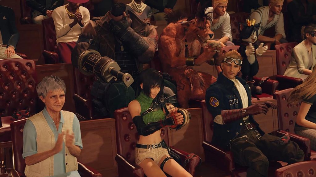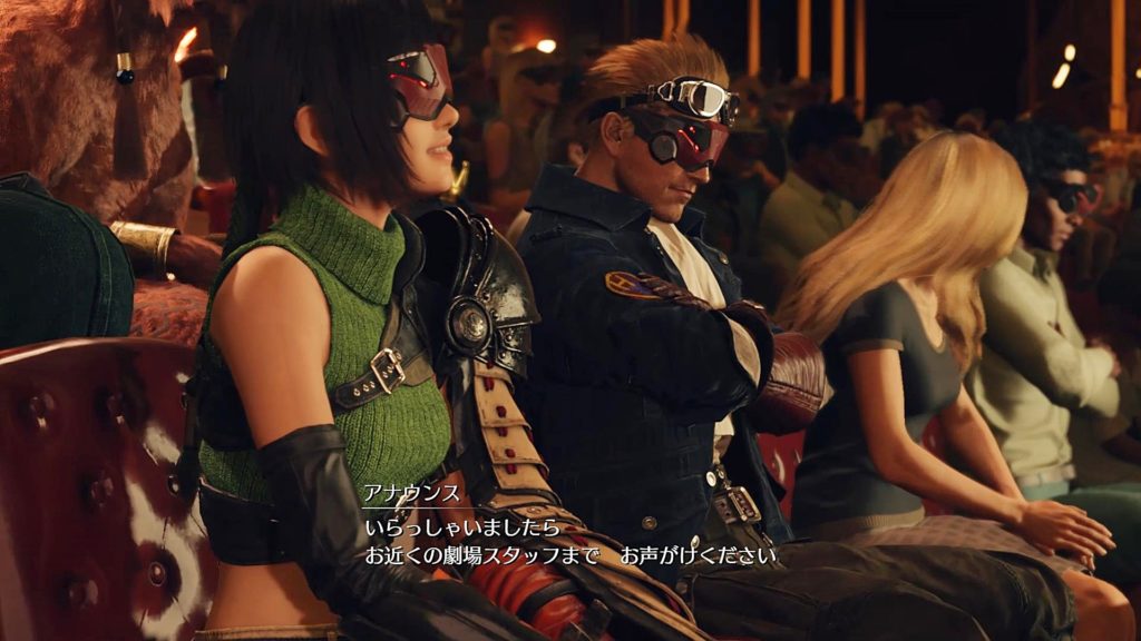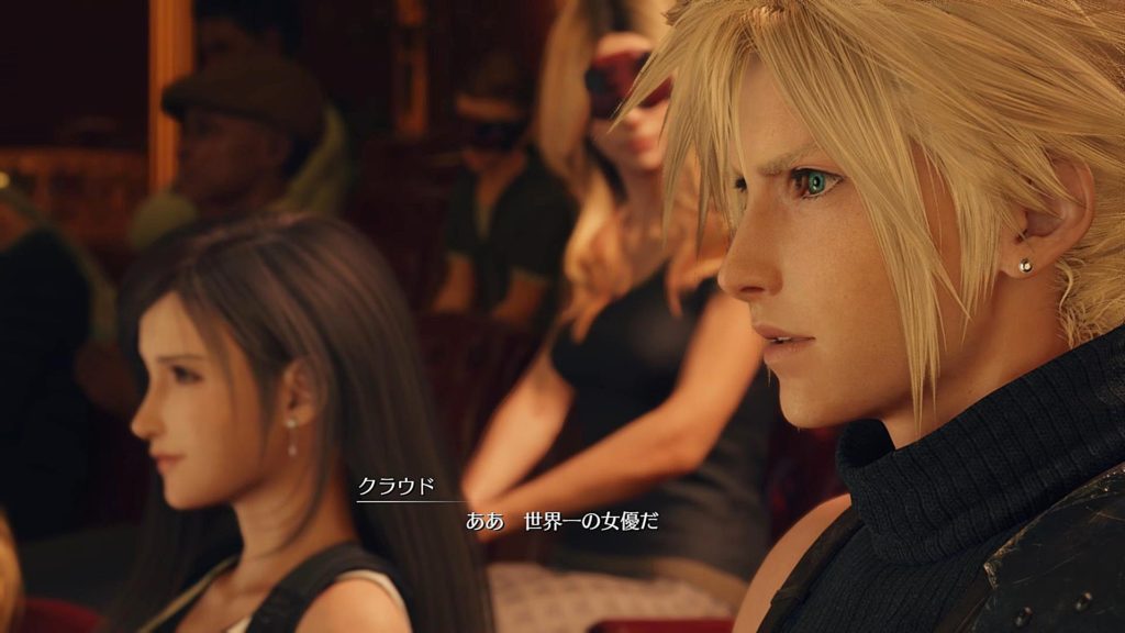 舞台とか興味なさそうなシドが居眠りし、でもエアリス登場にユフィが興奮気味に起こしたりとか、静かに見るヴィンセントとか、みんならしくていい。